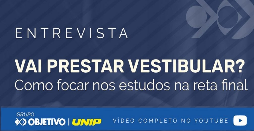 “Vai prestar vestibular? Como focar seus estudos na reta final” é tema da nova entrevista do Colégio e Curso Objetivo, que vai ao ar no 19 de outubro, a partir das 18 horas, no canal oficial do Objetivo no YouTube.