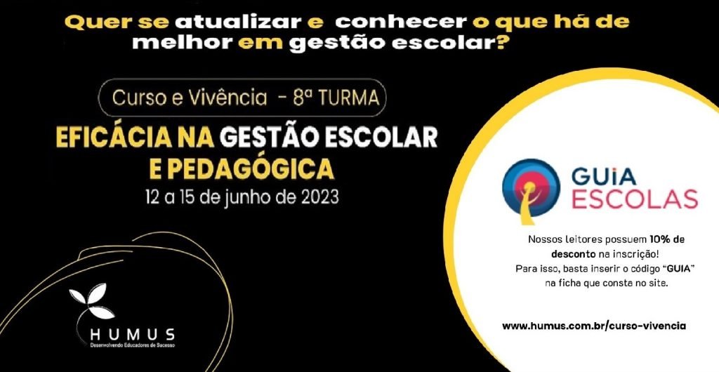 Os leitores e parceiros do Guia Escolas possuem 10% de desconto na inscrição, utilizando o cupom “GUIA”. Para mais informações sobre os módulos e inscrições, acesse https://www.humus.com.br/curso-vivencia.