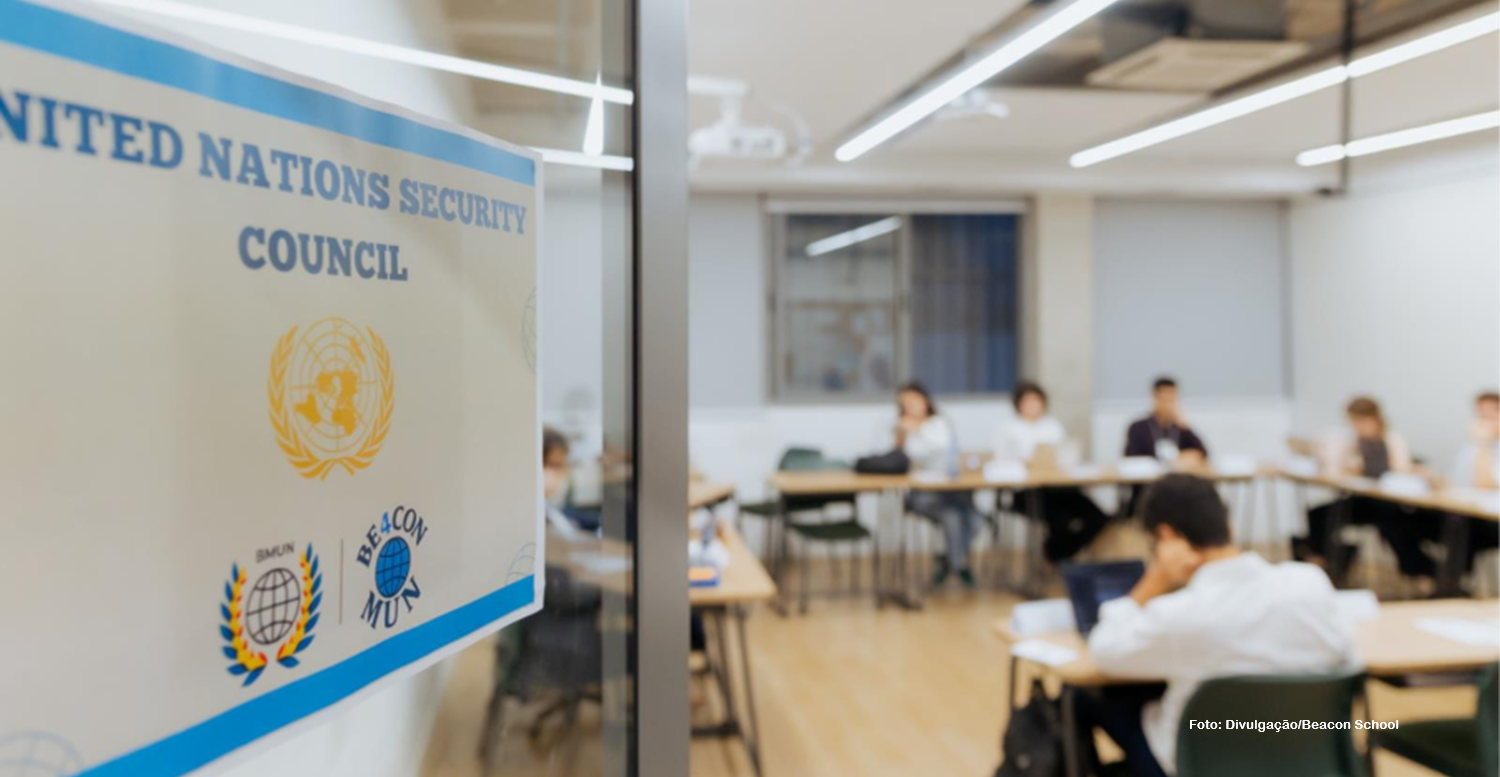 Em 2025, Max Meyer, aluno do 3º ano do Ensino Médio na Beacon School, viveu uma experiência transformadora: embarcou para o interior do Ceará para ajudar na construção de bibliotecas em escolas da rede pública do estado. Ele não imaginava o quanto aquela vivência mudaria sua percepção sobre o aprender. Pouco tempo depois, já em São Paulo, participou de outro projeto, organizando, ao lado de colegas, o BMUN – Beacon Model United Nations –, a simulação anual da ONU organizada pela própria escola. “A gente cria tudo do zero: materiais, logística, convites. É um treinamento para agir no mundo real”, diz o aluno.