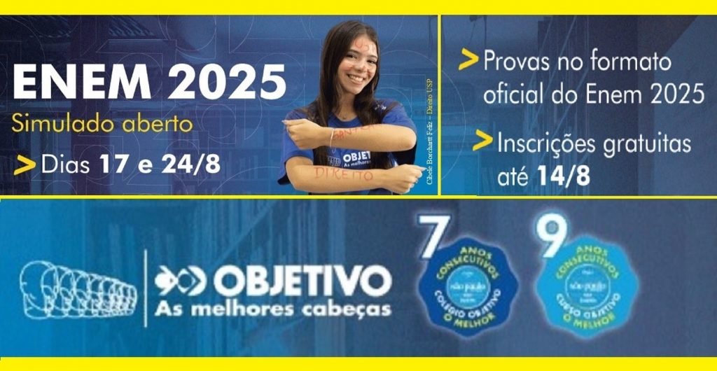 O estudante interessado em vivenciar fielmente o que é a prova do Enem tem até o dia 14 de agosto para se inscrever no Simulado Aberto Enem Objetivo. Promovido pelo Sistema de Ensino Objetivo – que é composto por unidades próprias e conveniadas distribuídas por todo o Brasil –, a participação é gratuita e aberta a toda a população.