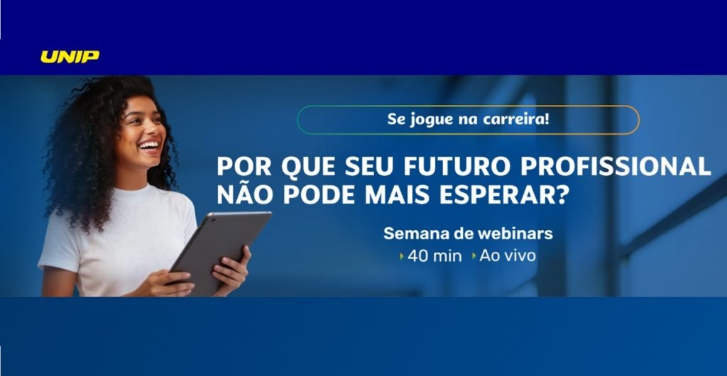 Com o objetivo de orientar os vestibulandos na escolha da profissão, a Universidade Paulista (Unip) preparou uma semana especial de webinars. A atividade leva o nome de “Se jogue na carreira” e proporciona eventos rápidos, de 40 minutos, ao vivo.